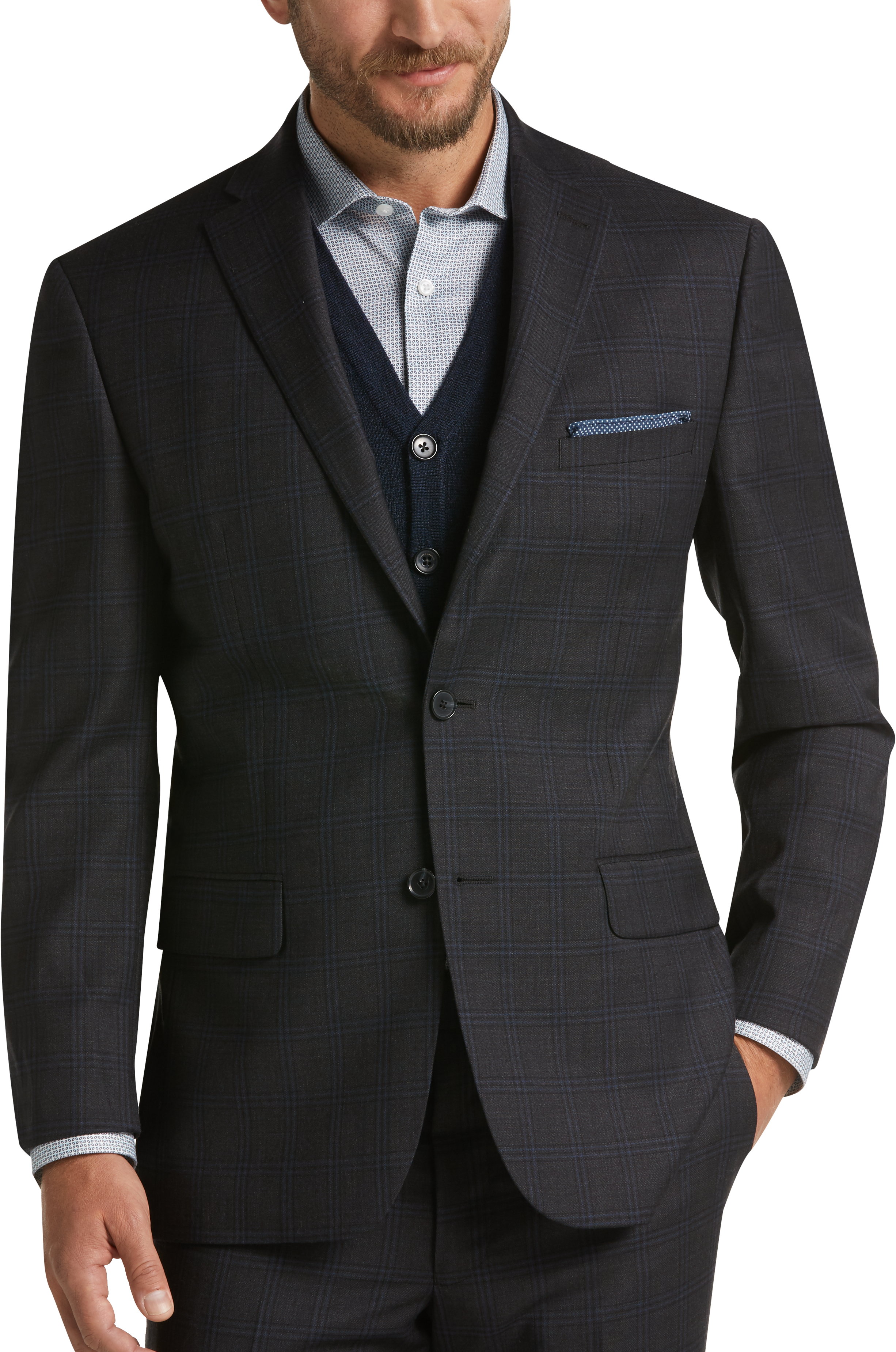 Dkny Charcoal Plaid Extreme Slim Fit Men S Suits Men S Wearhouse